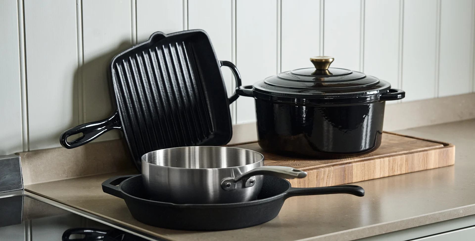 Our extensive assortment of kitchen products includes a wide range of pots, pans and cookware of other types. Whether you are looking for a new saucepan set, a wok, or a great sauté pan, you have lots of options in our collection of high-quality cookware. Here you will find pots and pans from great brands like Fiskars, Demeyere and WMF.